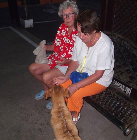 Früher hat ja Pistache, die herrenlose Hündin, die mal mit heißem Wasser übergossen wurde, die Reste bekommen. Aber in diesem Sommer ist die Hündin hoch betagt gestorben. Da jeder sie im Ort kannte und mochte, hat Birgit ein kleines nettes Erinnerungsschild an der Tür angebracht.-