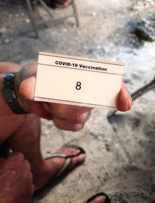 This is our Vaccination Record Card, unfortunately the paper is a bit very thin. There were also cardboarded white ID cards, but unfortunately they had run out before we got vaccinated, all those vaccinated after Dirk received the newly delivered cardboard cards ...-