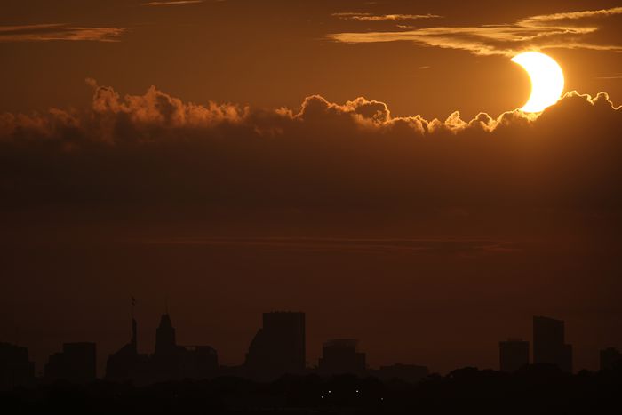 Eine partielle Sonnenfinsternis über Baltimore. Die